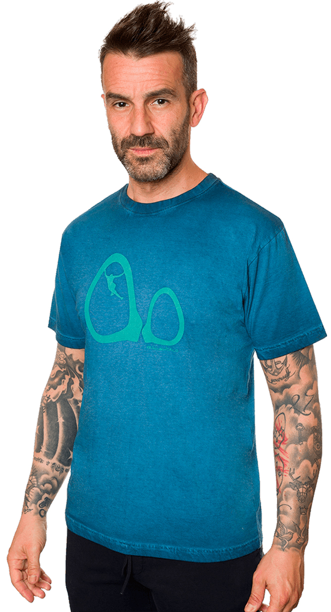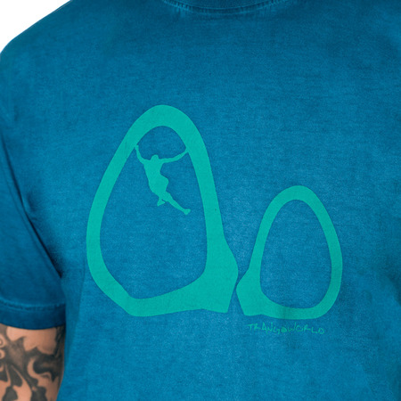 T-shirt desenhada para boulder e escalada.