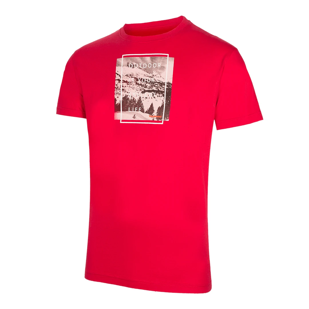 Camiseta masculina de algodão, para trekking e caminhadas, com decote redondo e mangas curtas. Tecido natural, lavagem com silicone, tecido natural e tratamento anti-borboto.