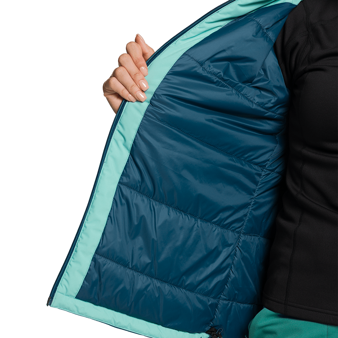 iva incl.Jaqueta técnica feminina de alto desempenho com membrana Inner Plus impermeável e respirável (10.000 mm / 10.000 g/m²/24h) e isolamento térmico Fibrelite.