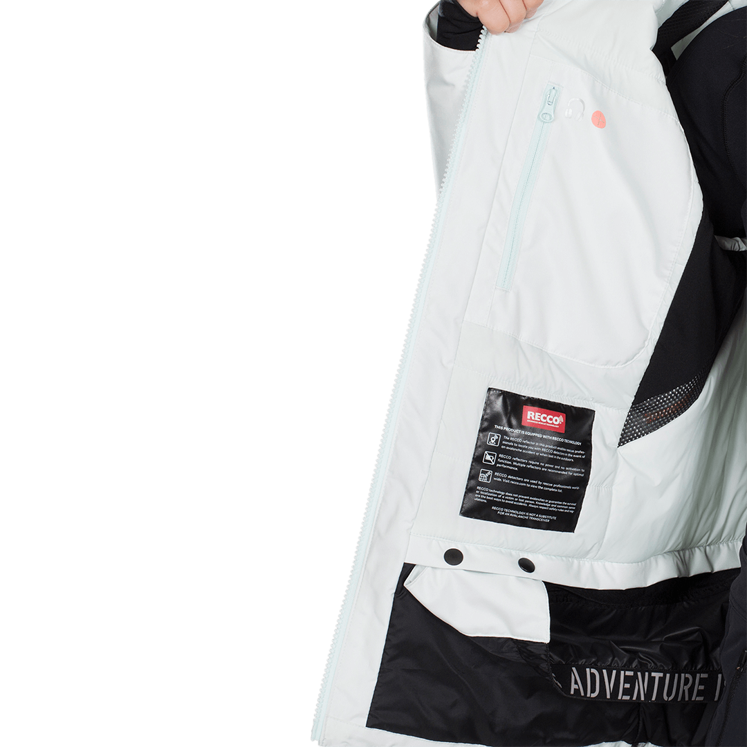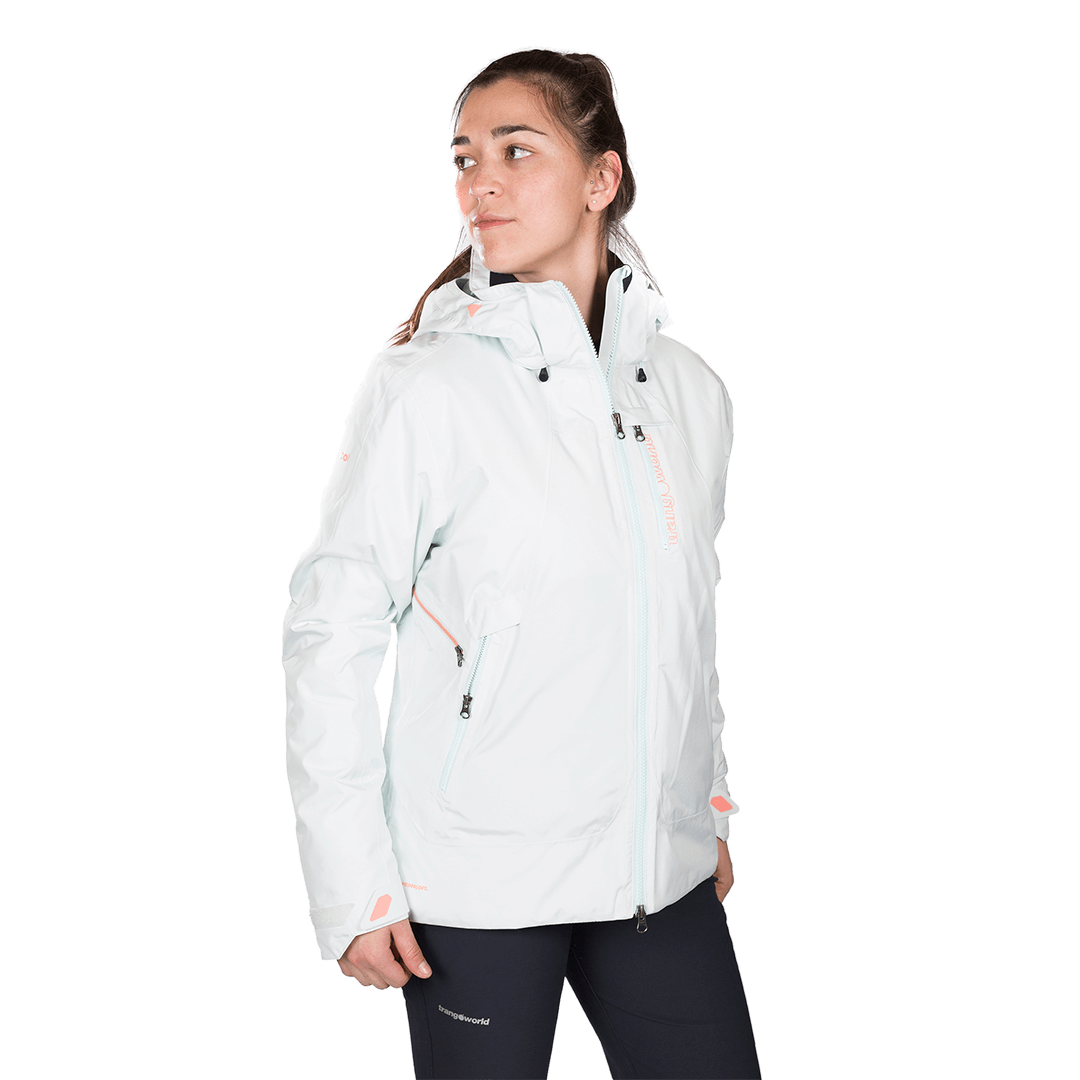 iva incl.Casaco feminino com membrana INNER PLUS + PRIMALOFT BLACK ISOLATION ECO impermeável e respirável. Capuz removível com zíper e duplo cordão facial e volume no capuz com elástico. Costuras seladas, zíperes impermeáveis, zíper duplo, ventilação nas axilas e punhos de velcro ajustáveis. Aba de neve interna removível por zíper com fecho de pressão. Cinta elástica na bainha, fechamento em tanca, punho interno com lycra para saída do polegar e isolamento térmico de fibra oca. Bolsos no peito e ventral com zíper, bolso na manga com zíper e bolso interno com saída com zíper para capacetes. Sistema RECCO incorporado.