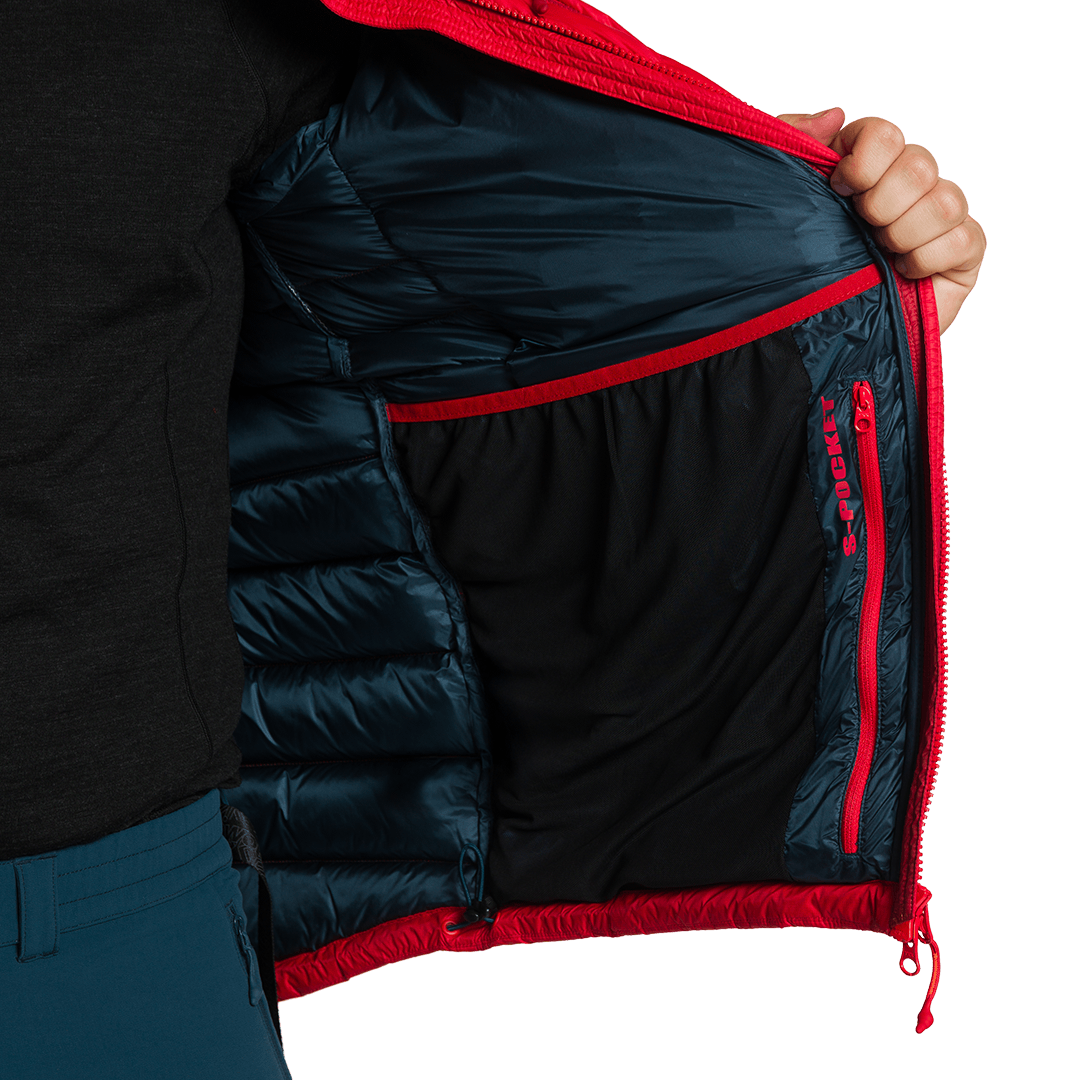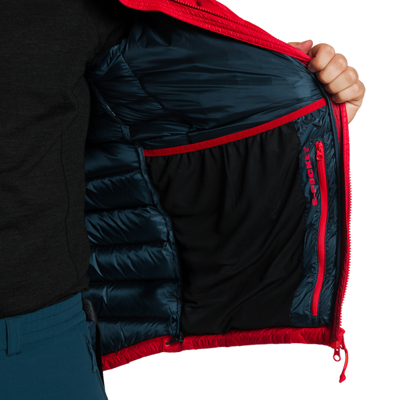 iva incl.Jaqueta técnica masculina com plumas europeias recicladas (enchimento 700) e tecido de poliéster reciclado.