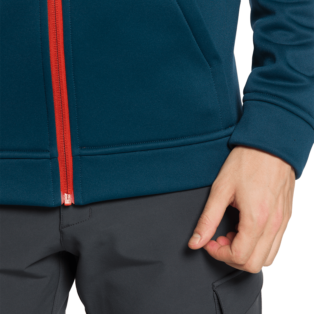 iva incl.Um moletom masculino feito de tecido de poliéster elástico, esta peça é uma aliada confortável e versátil para quem gosta de atividades ao ar livre.