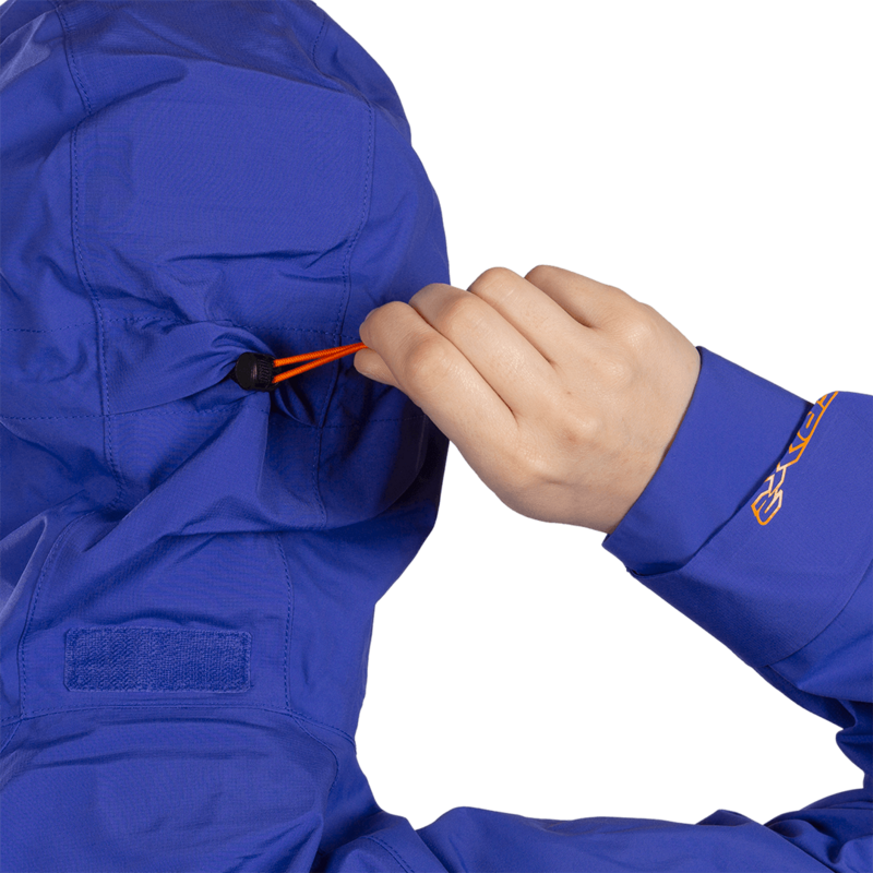 - Cinto facial duplo e volume do capuz.