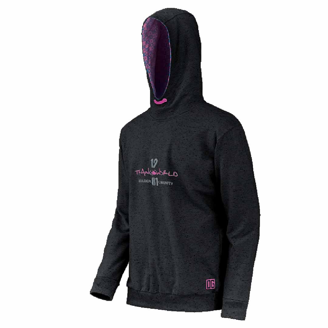 Bolso canguru com duplo acesso.