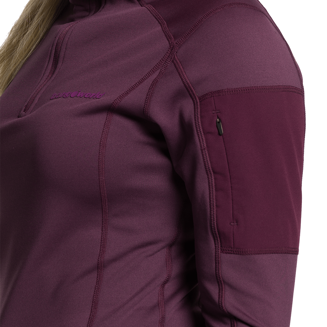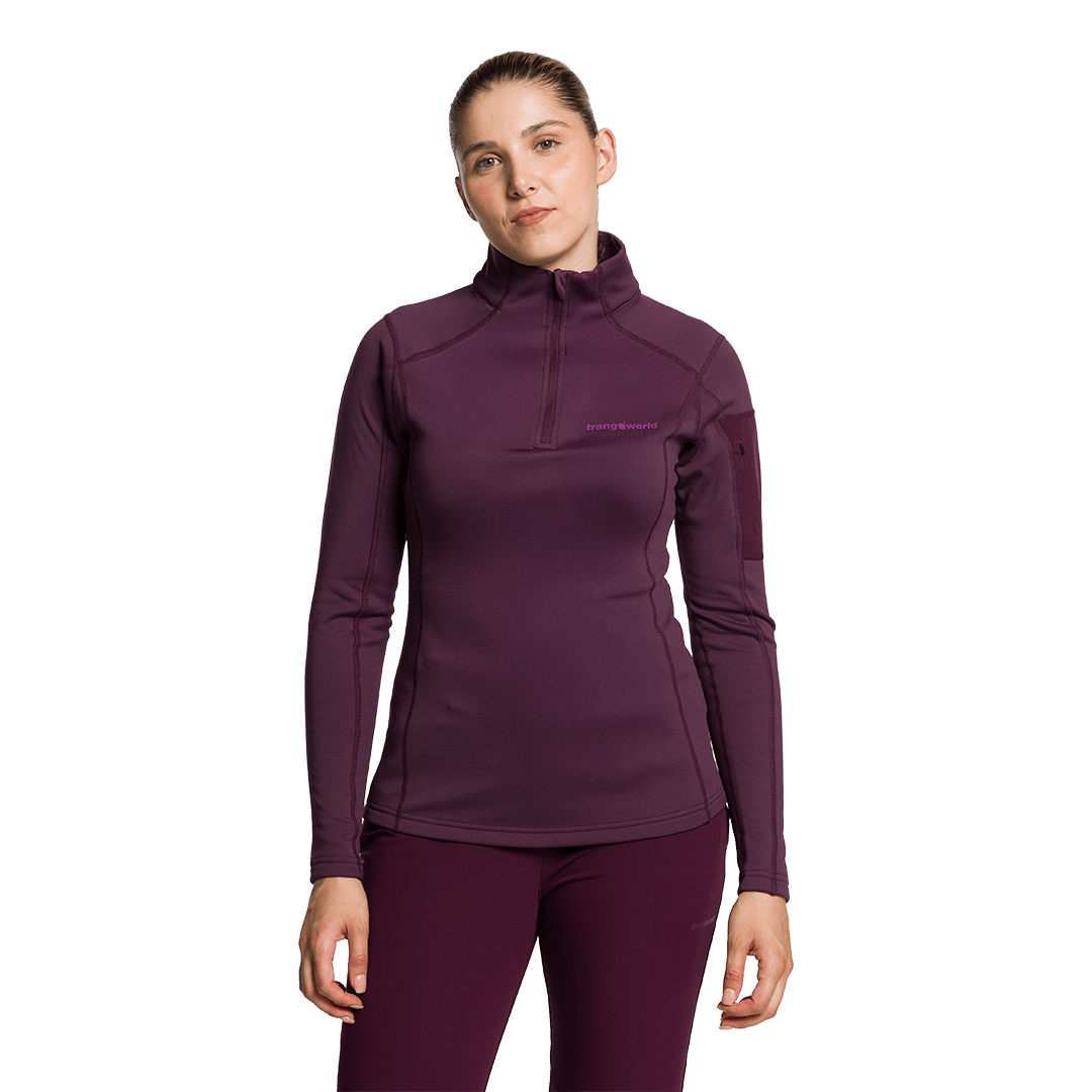 iva incl.Pulôver térmico feminino com gola alta e zíper, ideal para caminhadas ou momentos de lazer.