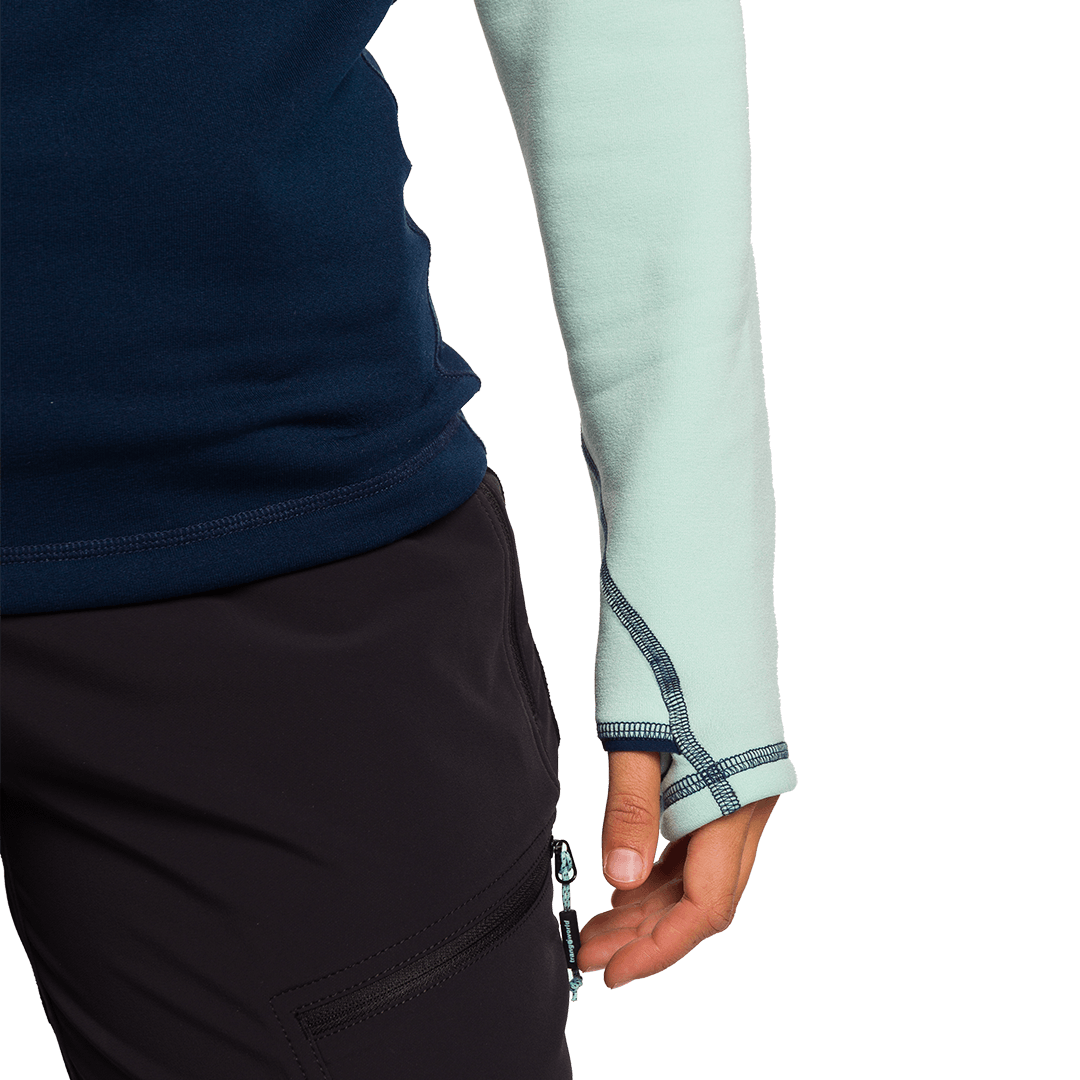 Ideal como camada intermediária para montanhismo, escalada e trekking.