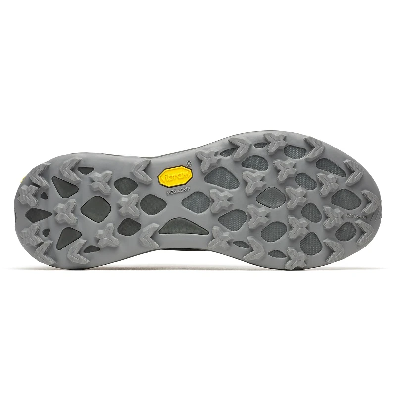 Uma placa de proteção na parte dianteira do pé protege contra os terrenos irregulares e uma suela Vibram® Megagrip com tecnologia Traction Lug oferece um aperto superior e inquebrantável em qualquer superfície.